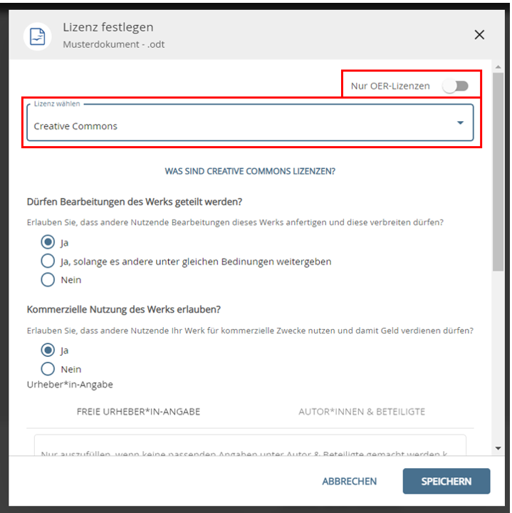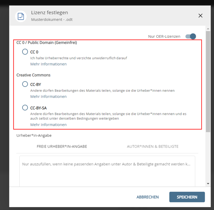 - Wie gebe ich die Urheberschaft für die OER an?