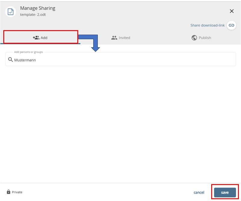 Add a comment and confirm with "Save". Finally, you agree to give the access privileges to the editors.