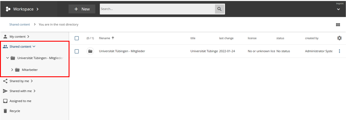 As a further option, there is a folder "‹Your institution› - Mitglieder" under "Shared Content".